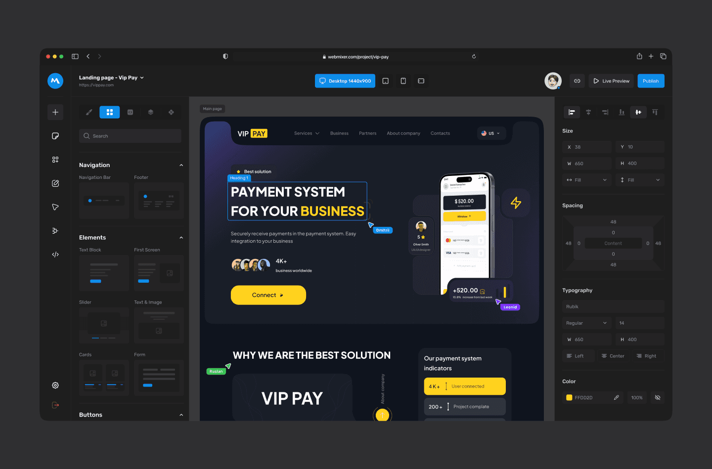 Part-time job. In this position I hold 2 key positions in website and application development at the same time. My main tasks include: creation design, creation of UI-Kit or design system for the project, search for developers, control over the project, optimization of web sites for search engines, coordination of work on the project